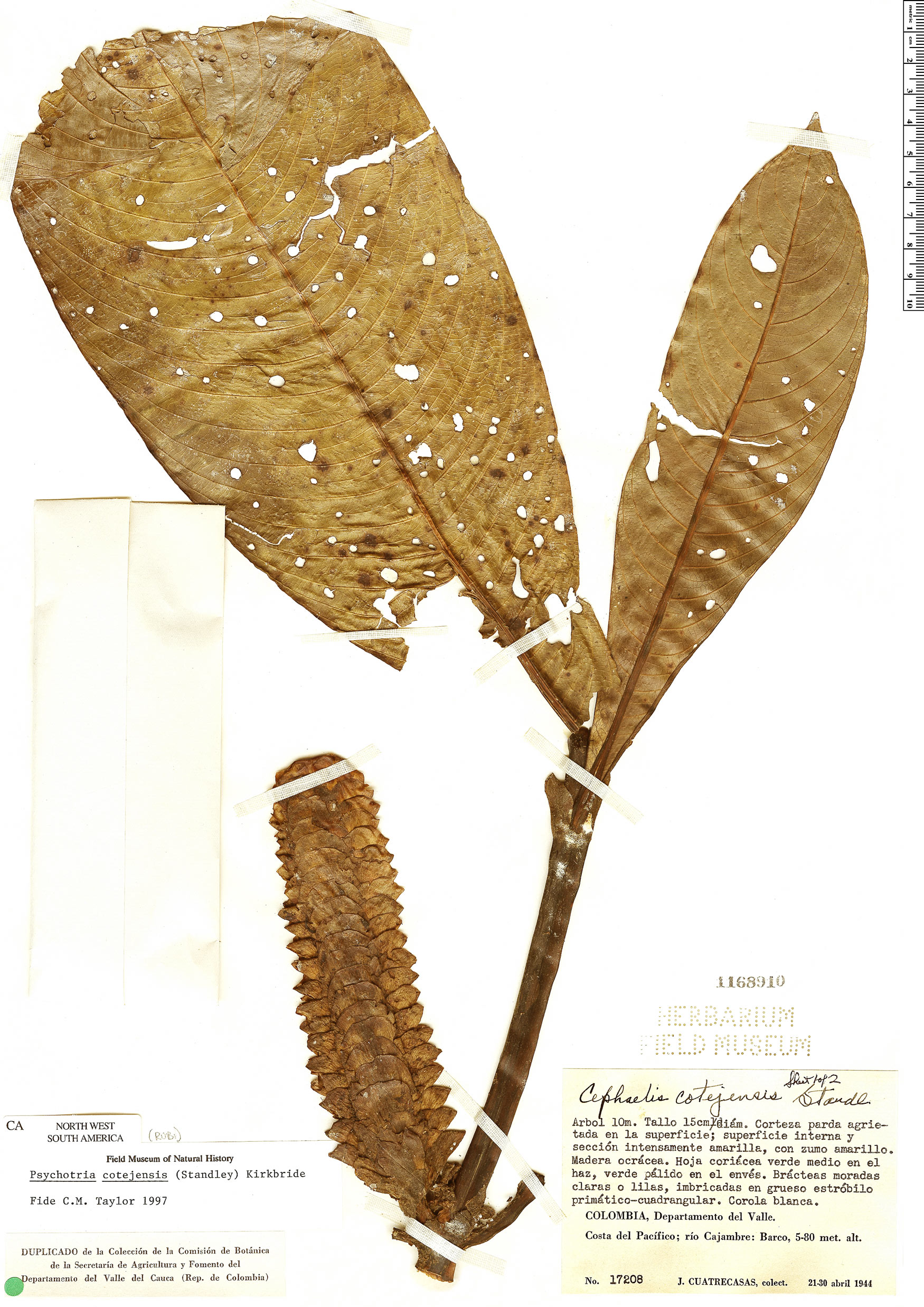 Notas: Syn.: Cephaelis [Psychotria] cotejensis, det. C. M. Taylor, 1997; Comb. nov. 2015