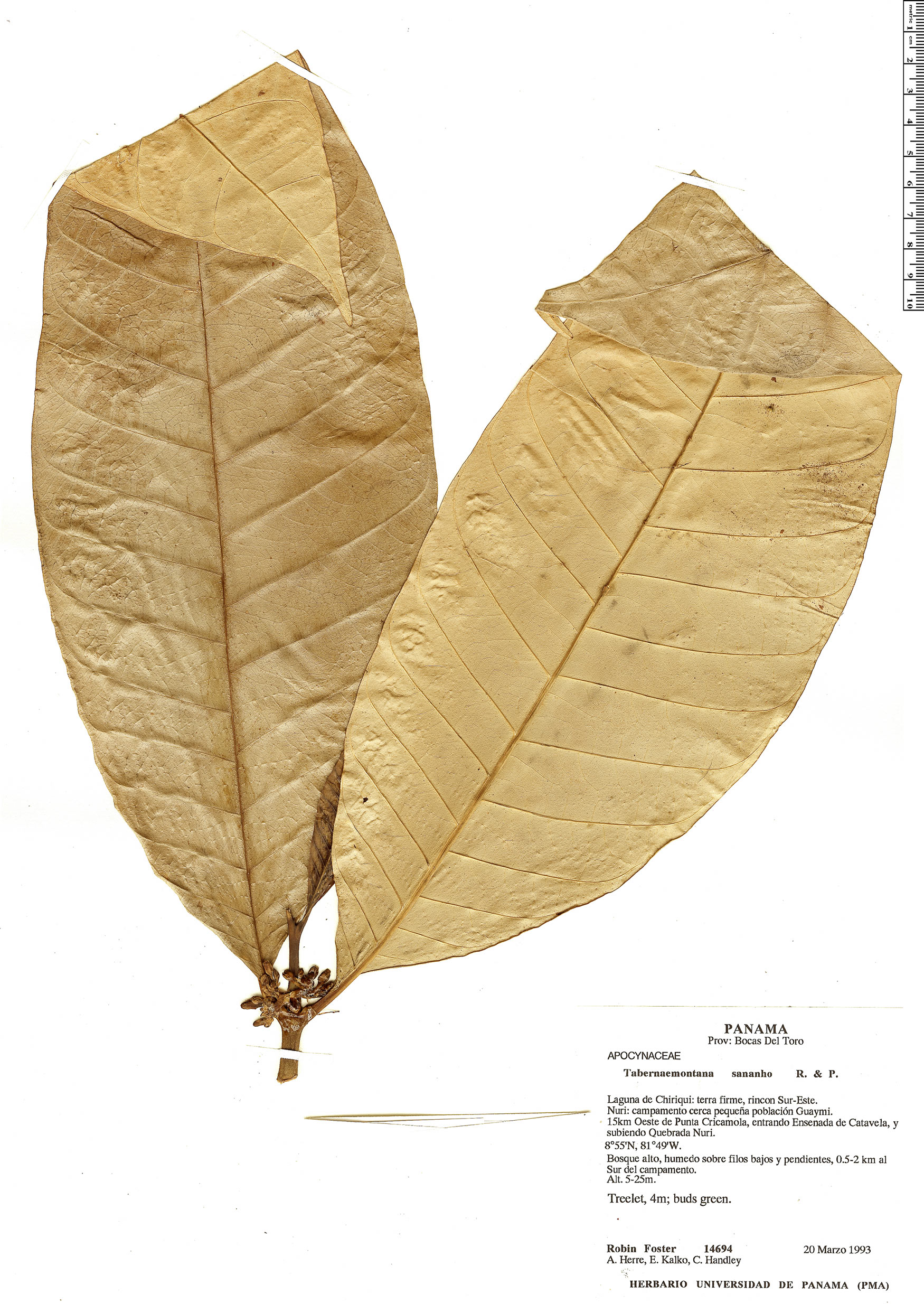 Notas: Herbarium PMA; prev. det.: Tabernaemontana sananho